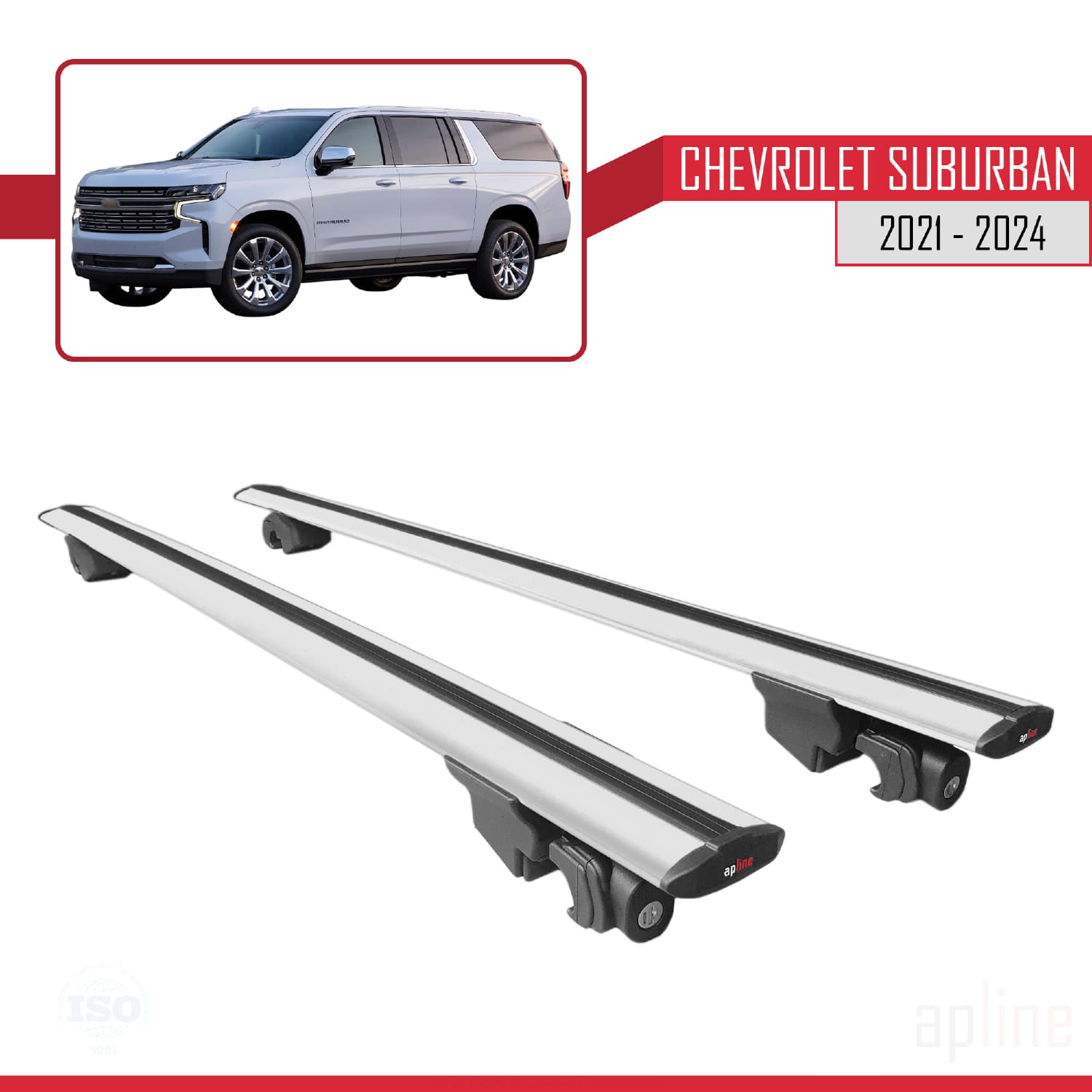 Compatible with Chevrolet Suburban 2021-2024 HOOK Model Car Roof Rack Cross Bar Grey Aluminium 2 Bars