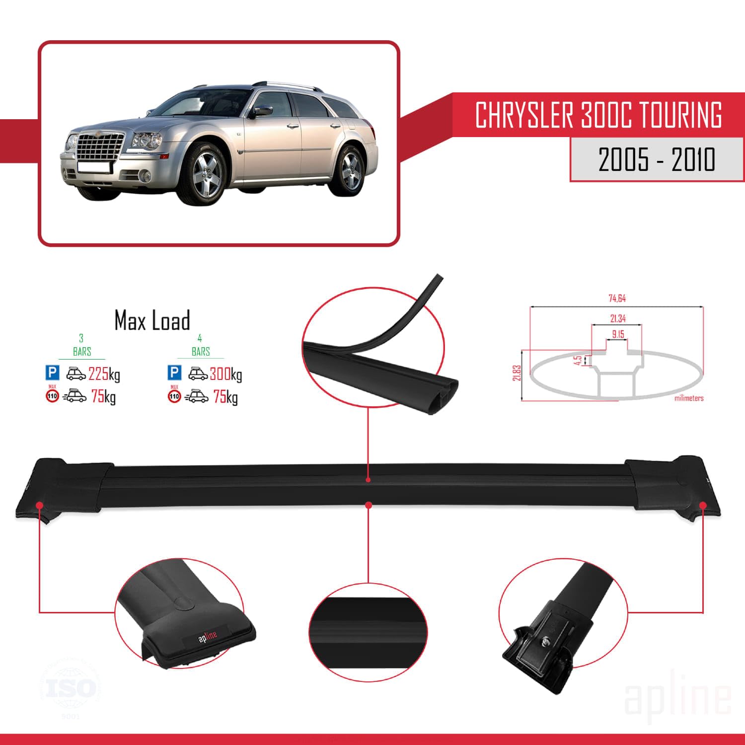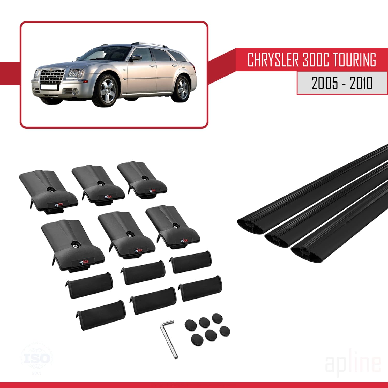 Compatible with Chrysler 300C Touring 2005-2010 Fly Model Car Roof Rack Cross Bar Black Aluminium 3 Bars