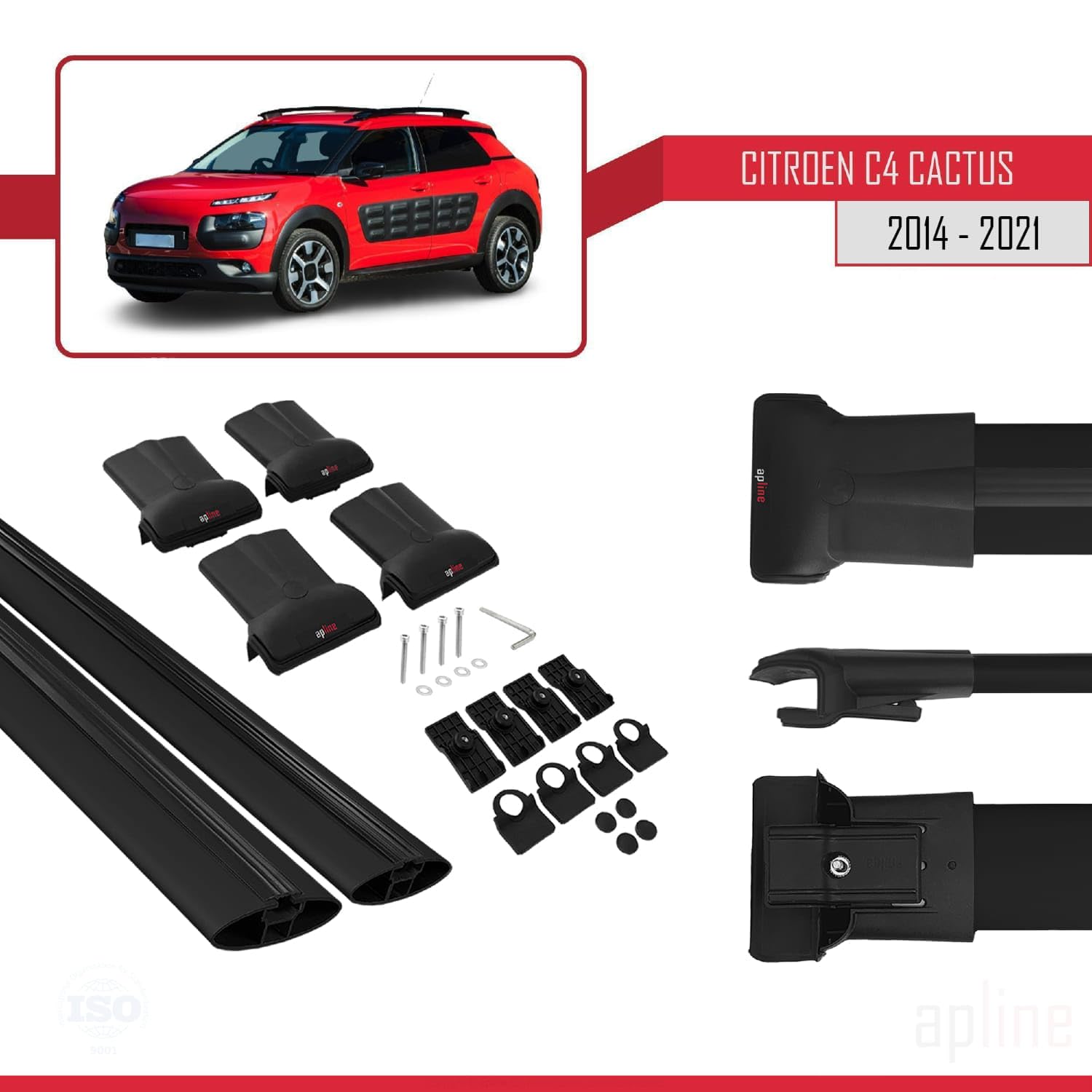 Compatible with Citroen C4 Cactus 2014-2021 Fly Model Car Roof Rack Cross Bar Black Aluminium 2 Bars
