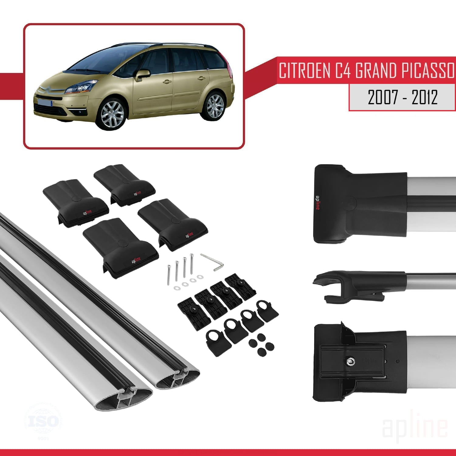 Compatible with Citroen Grand C4 Picasso 2007-2012 FLY Model Car Roof Rack Cross Bar Grey Aluminium 2 Bars