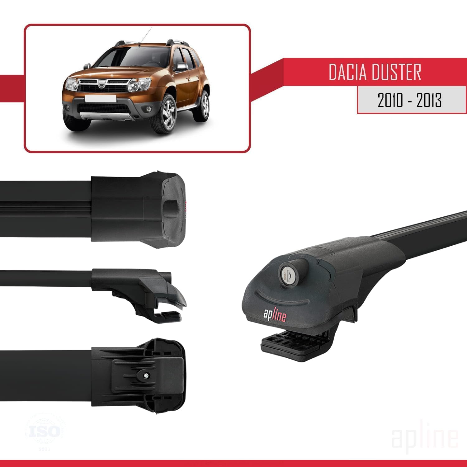 Compatible with Dacia Duster (HS) Pre-Facelift 2010-2013 ACE-1 Car Roof Rack Cross Bar Black Aluminium 3 Bars