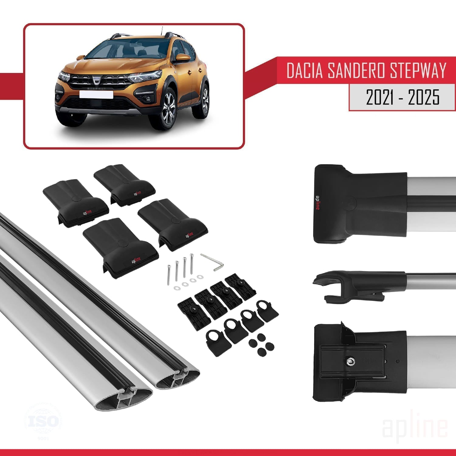 Compatible with Dacia Sandero Stepway 3 2021-2025 FLY Model Car Roof Rack Cross Bar Grey Aluminium 2 Bars