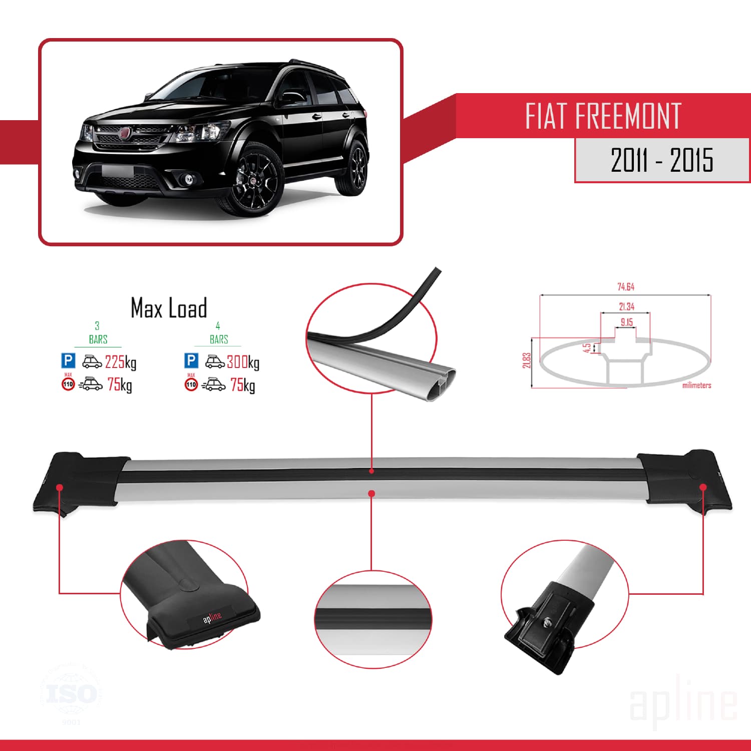 Compatible with Fiat Freemont 2011-2015 FLY Model Car Roof Rack Cross Bar Grey Aluminium 3 Bars