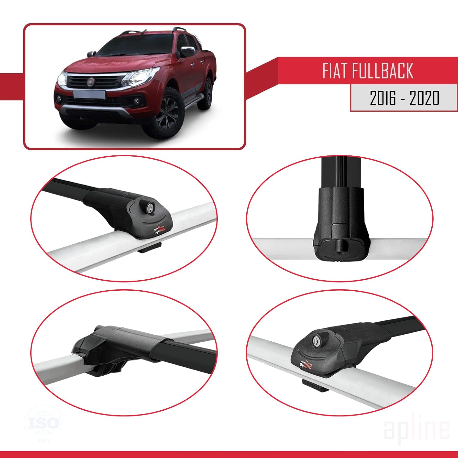 Compatible with Fiat Fullback 2016-2020 ACE-1 Car Roof Rack Cross Bar Black Aluminium 3 Bars