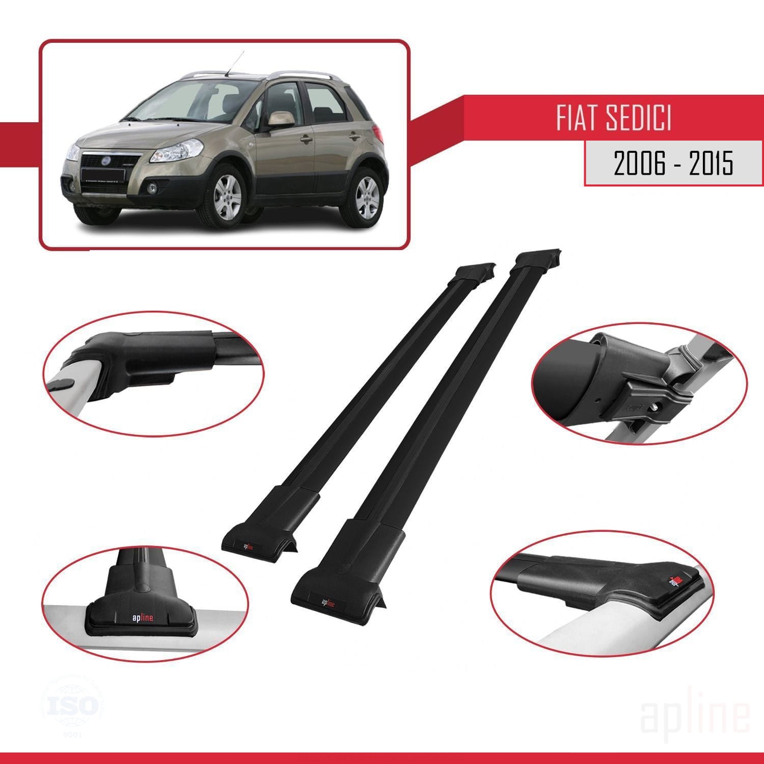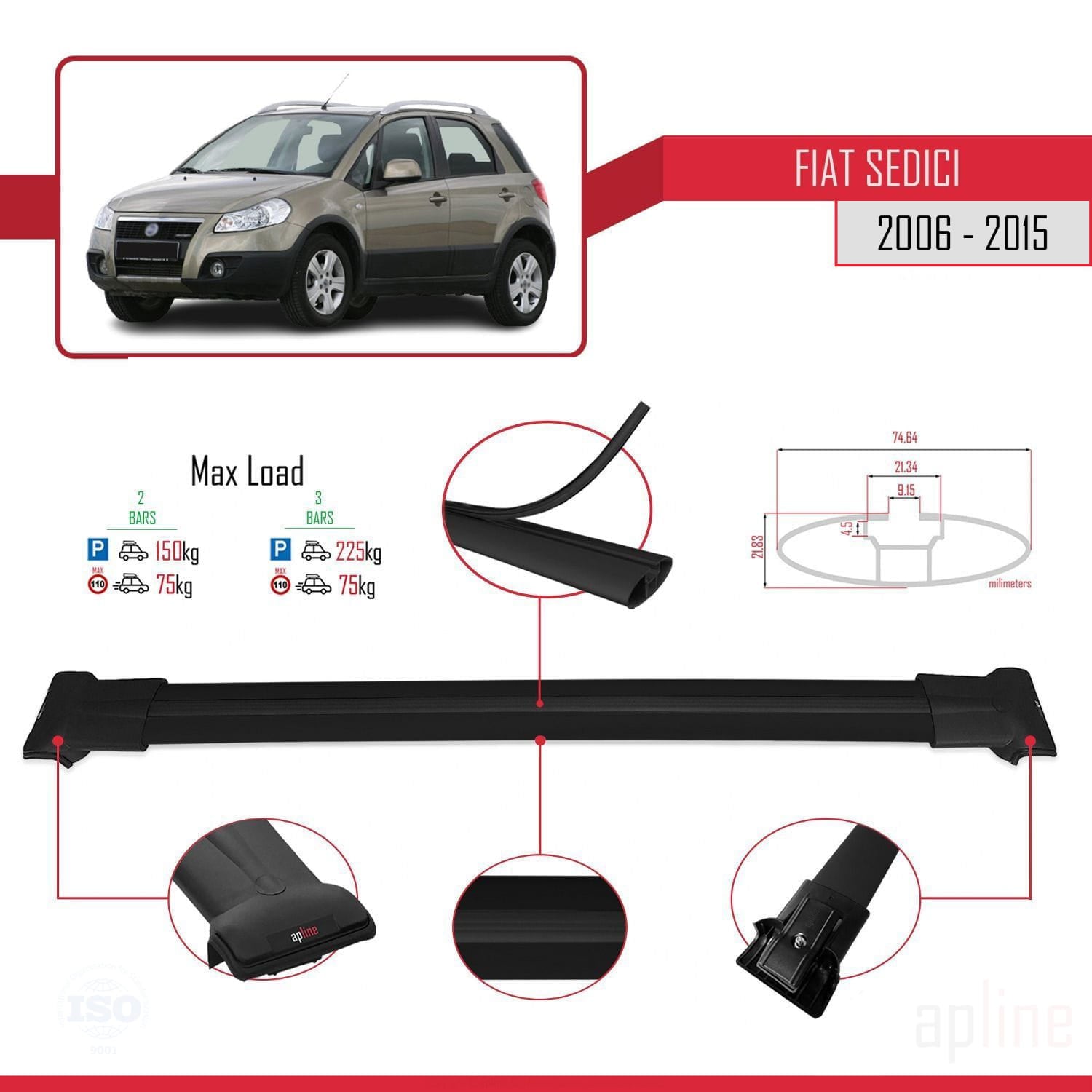 Compatible with Fiat Sedici 2006-2015 FLY Model Car Roof Rack Cross Bar Black Aluminium 2 Bars