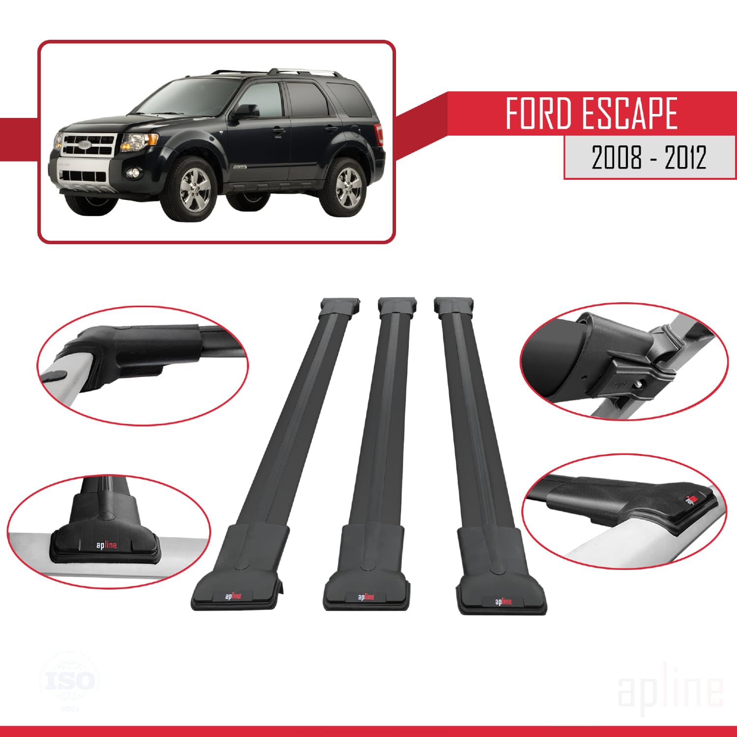 Compatible with Ford Escape 2008-2012 Fly Model Car Roof Rack Cross Bar Black Aluminium 3 Bars