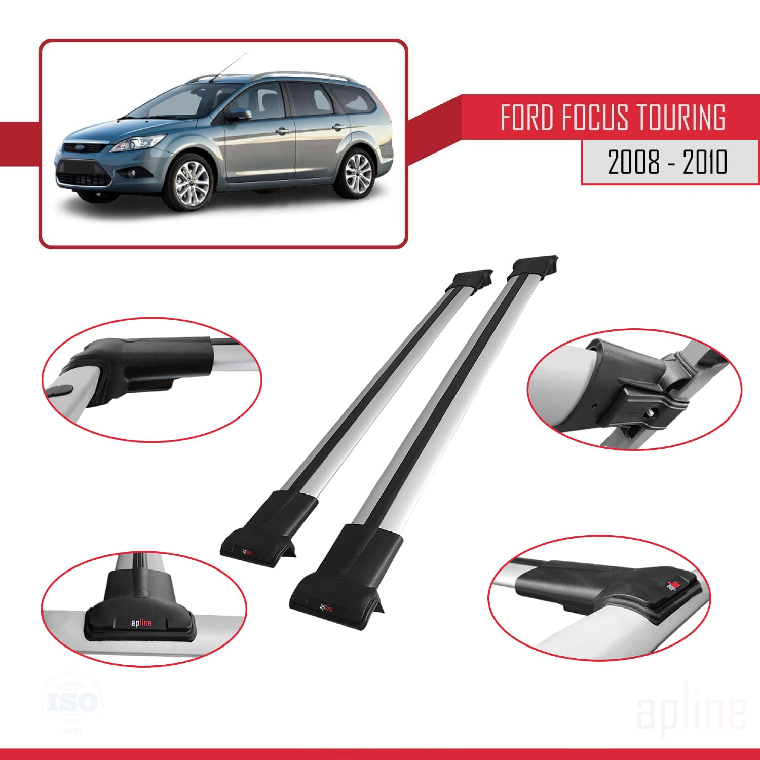 Compatible with Ford Focus 2 (C307) Turnier 2008-2010 FLY Model Car Roof Rack Cross Bar Grey Aluminium 2 Bars