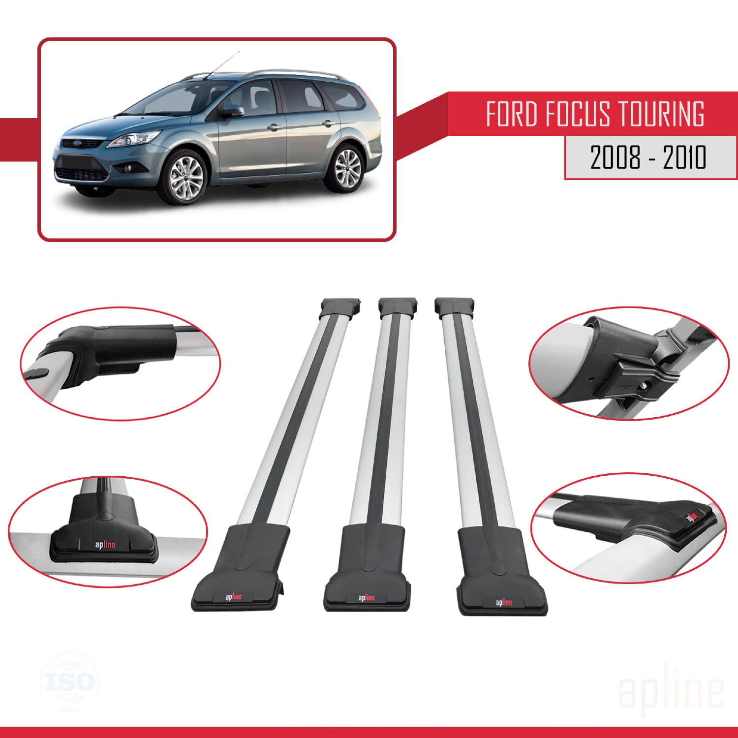 Compatible with Ford Focus 2 (C307) Turnier 2008-2010 FLY Model Car Roof Rack Cross Bar Grey Aluminium 3 Bars