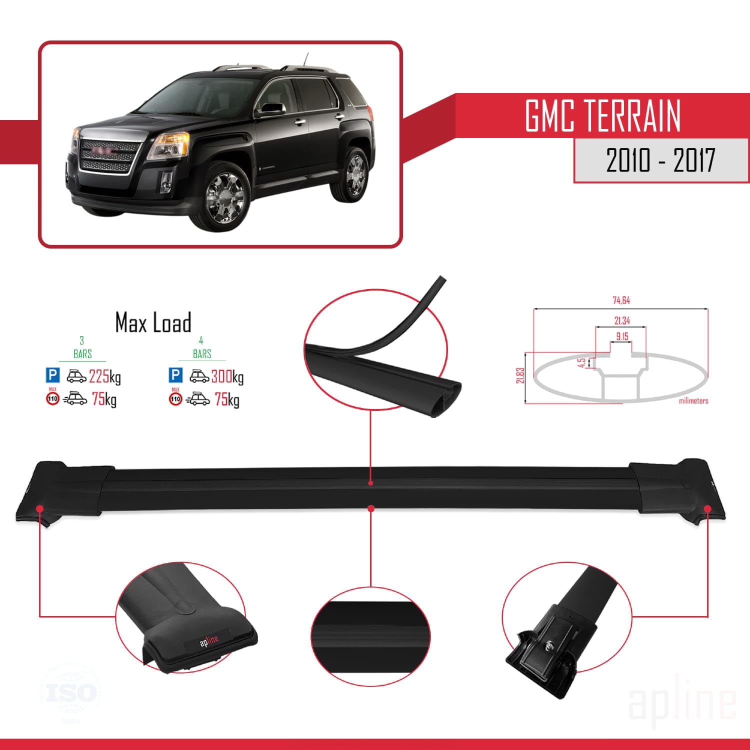 - It can carry up to 75kg in moving vehicle with aluminium bars. In the parked vehicle, 150kg maximum load is recommended for the product consisting of 2 bars, 225kg for the product consisting of 3 bars and 300 kg for the product consisting of 4 bars.