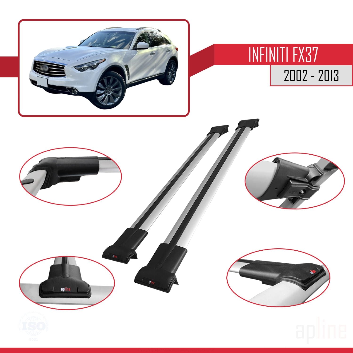 Compatible with Infiniti FX37 2002-2013 FLY Model Car Roof Rack Cross Bar Grey Aluminium 2 Bars