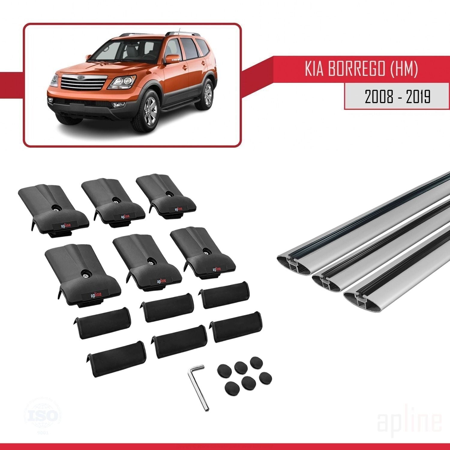 Compatible with Kia Borrego (HM) 2008-2019 FLY Model Car Roof Rack Cross Bar Grey Aluminium 3 Bars