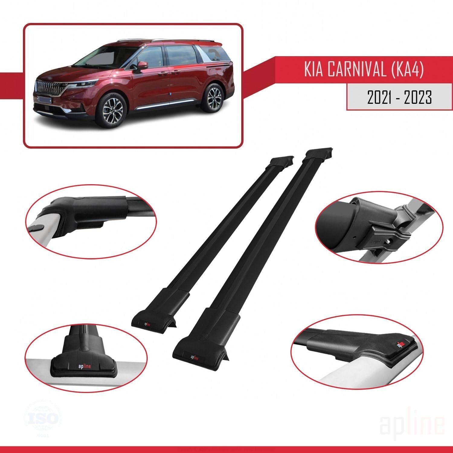 Compatible with Kia Carnival 4 (KA4) 2021-2023 Fly Model Car Roof Rack Cross Bar Black Aluminium 2 Bars