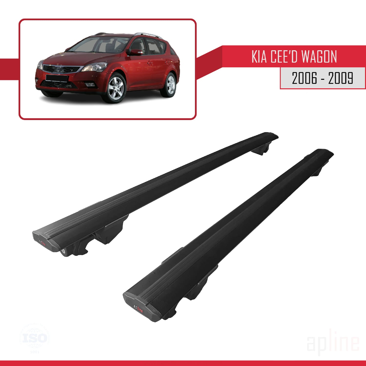 Compatible with Kia Ceed (ED) SW Pre-Facelift 2006-2009 HOOK Model Car Roof Rack Cross Bar Black Aluminium 2 Bars