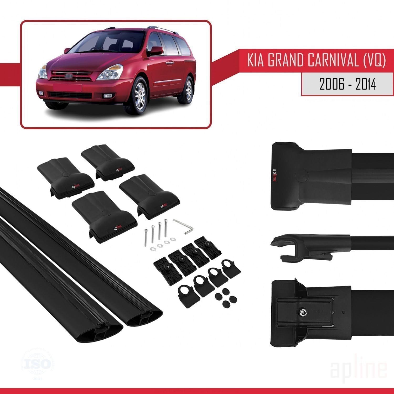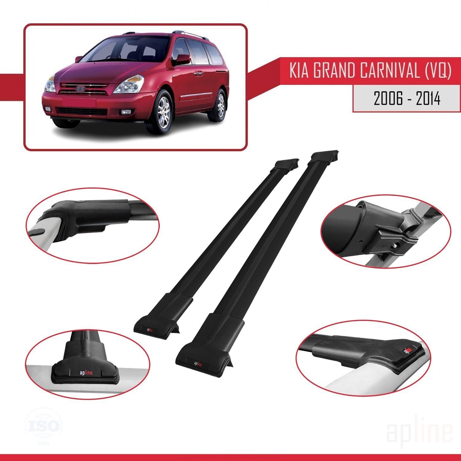 Compatible with Kia Grand Carnival 2 (VQ) 2006-2014 Fly Model Car Roof Rack Cross Bar Black Aluminium 2 Bars