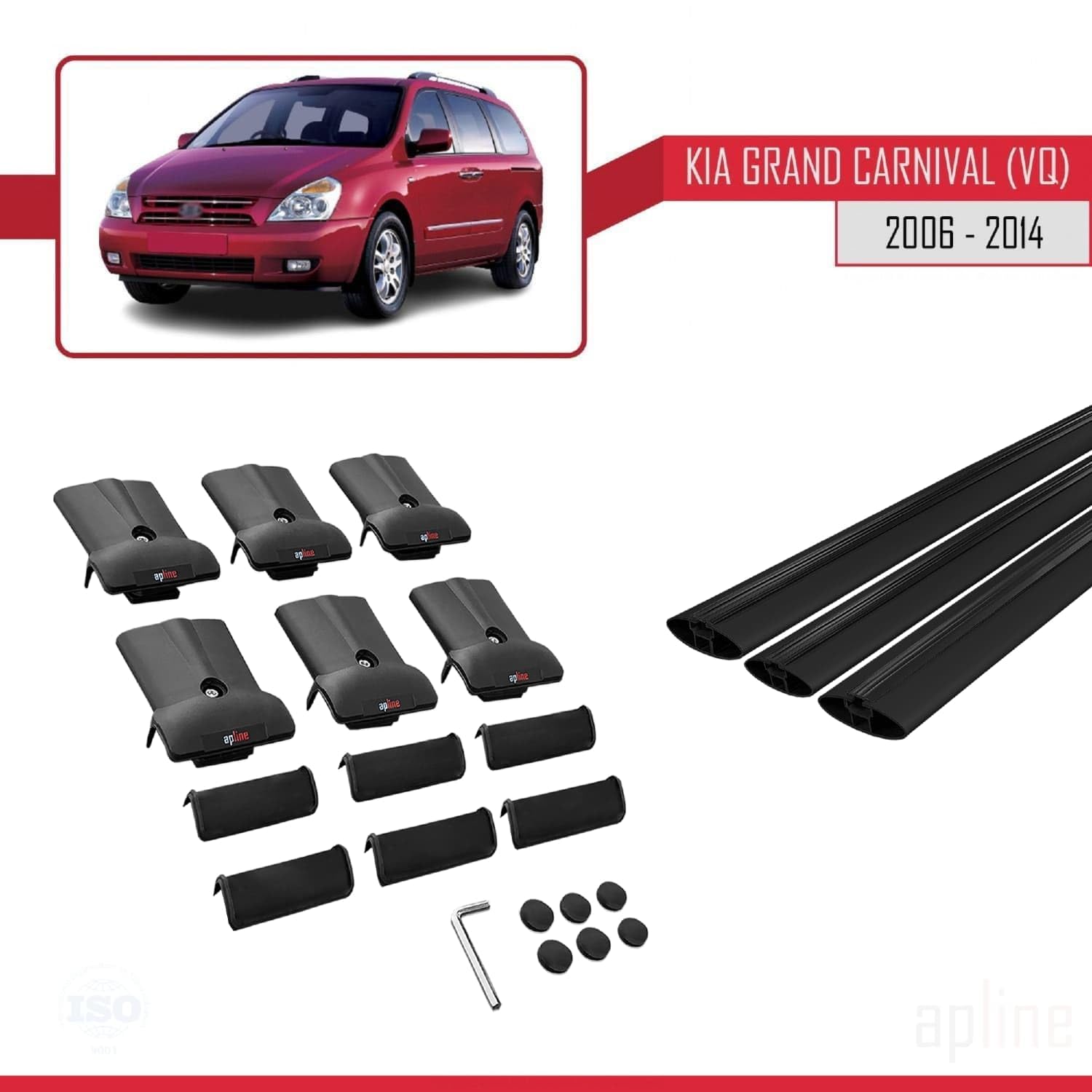 Compatible with Kia Grand Carnival 2 (VQ) 2006-2014 Fly Model Car Roof Rack Cross Bar Black Aluminium 3 Bars