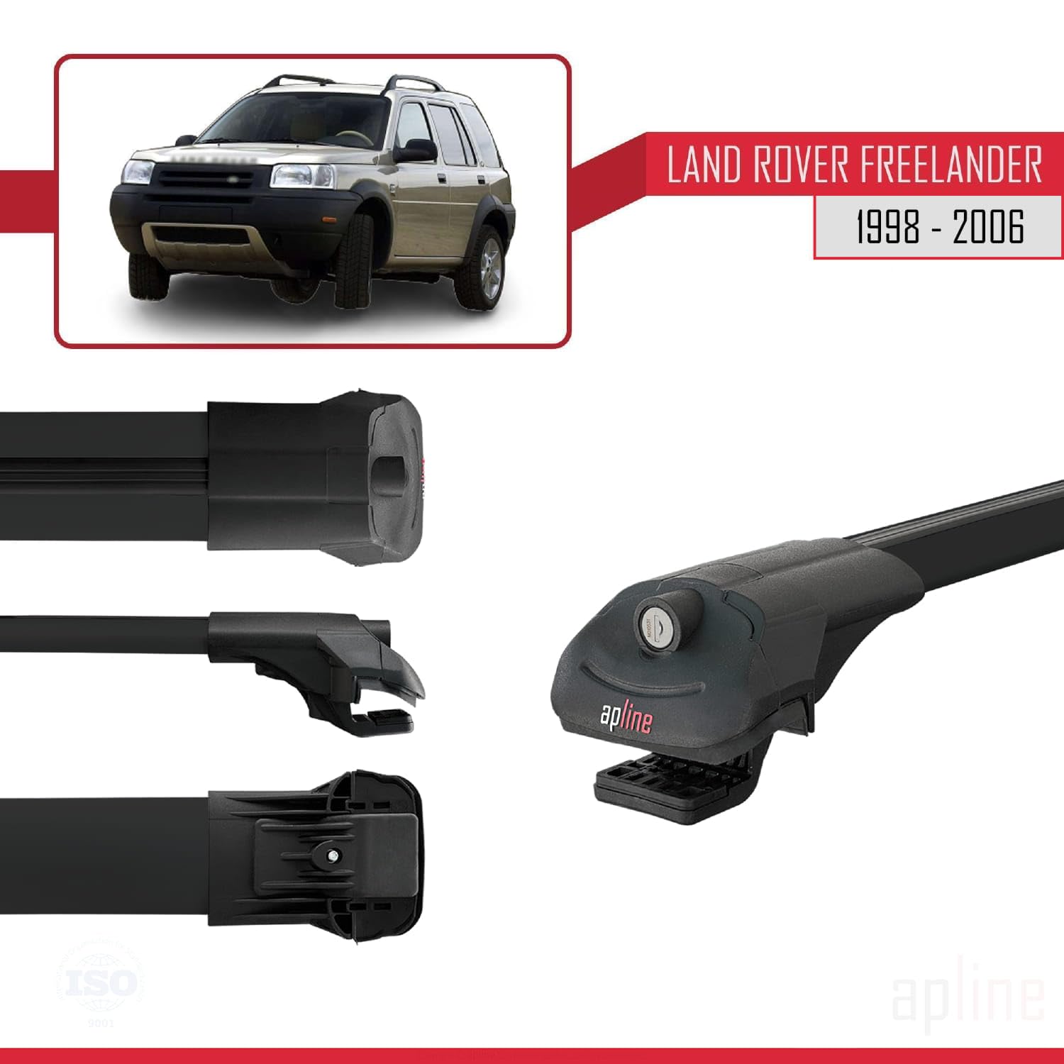 Compatible with Land Rover Freelander (L314) 1998-2006 ACE-1 Car Roof Rack Cross Bar Black Aluminium 3 Bars