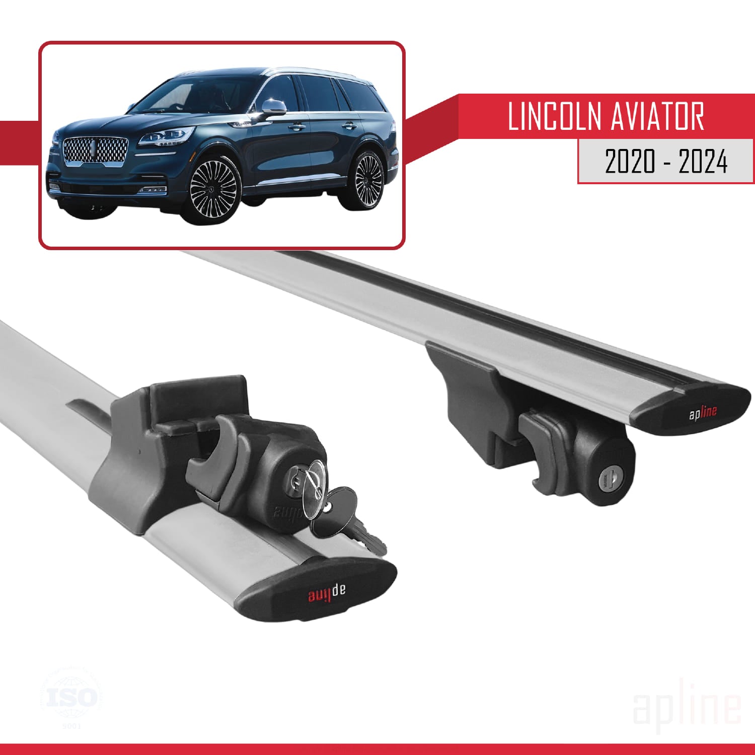 Compatible with Lincoln Aviator 2020-2024 HOOK Model Car Roof Rack Cross Bar Grey Aluminium 2 Bars