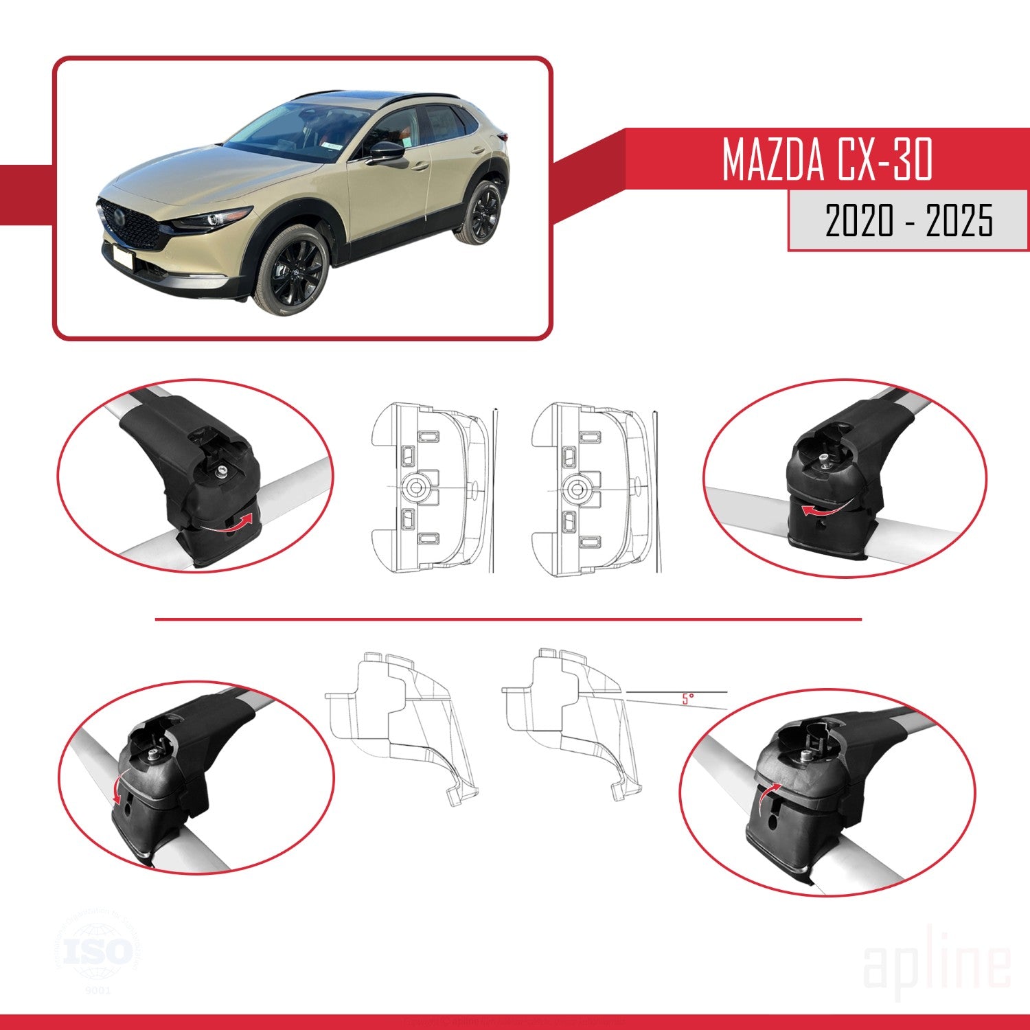 Compatible with Mazda CX-30 2020-2025 ACE-2 Car Roof Rack Cross Bar Grey Aluminium 2 Bars