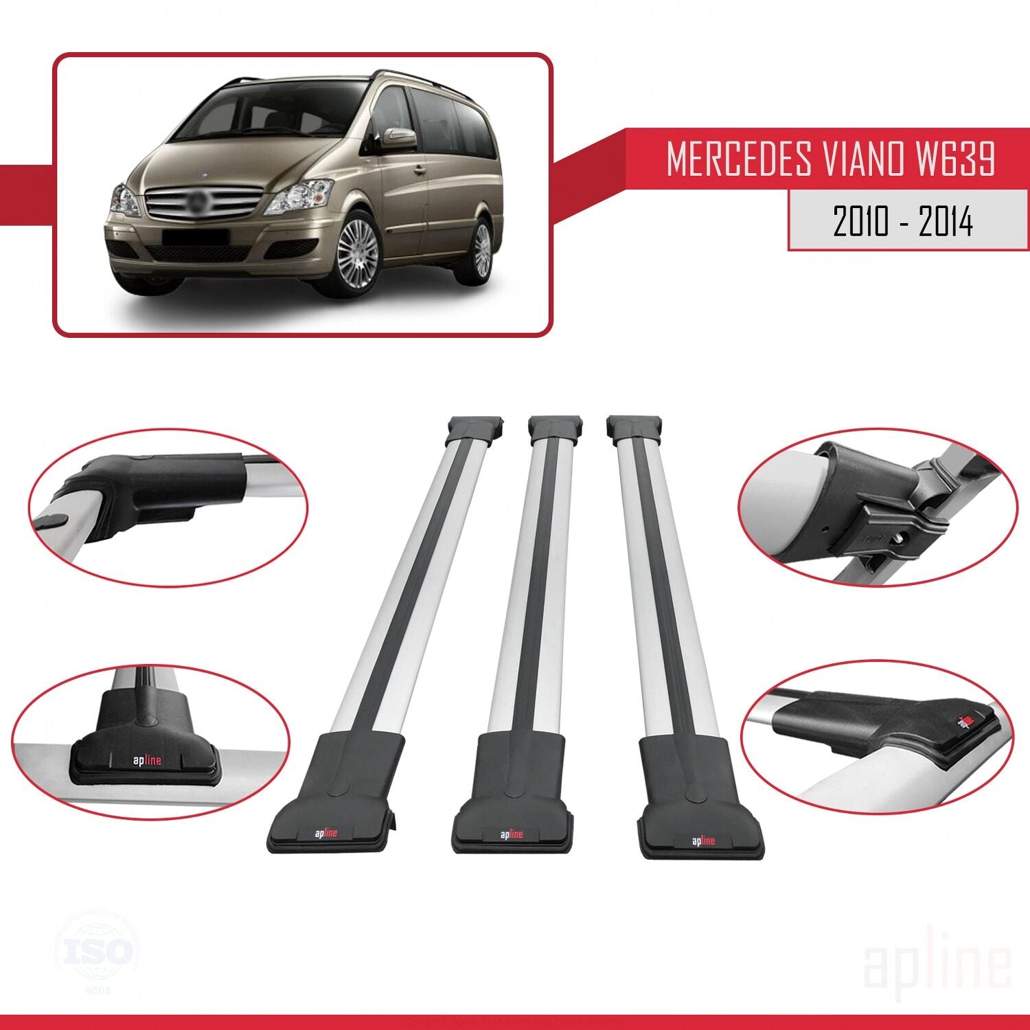 Compatible with Mercedes Viano 2 (W639) Post-Facelift 2010-2014 FLY Model Car Roof Rack Cross Bar Grey Aluminium 3 Bars