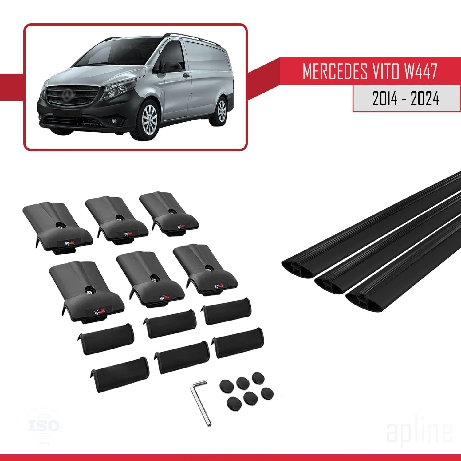 Compatible with Mercedes Vito 3 (W447) 2014-2025 Fly Model Car Roof Rack Cross Bar Black Aluminium 3 Bars