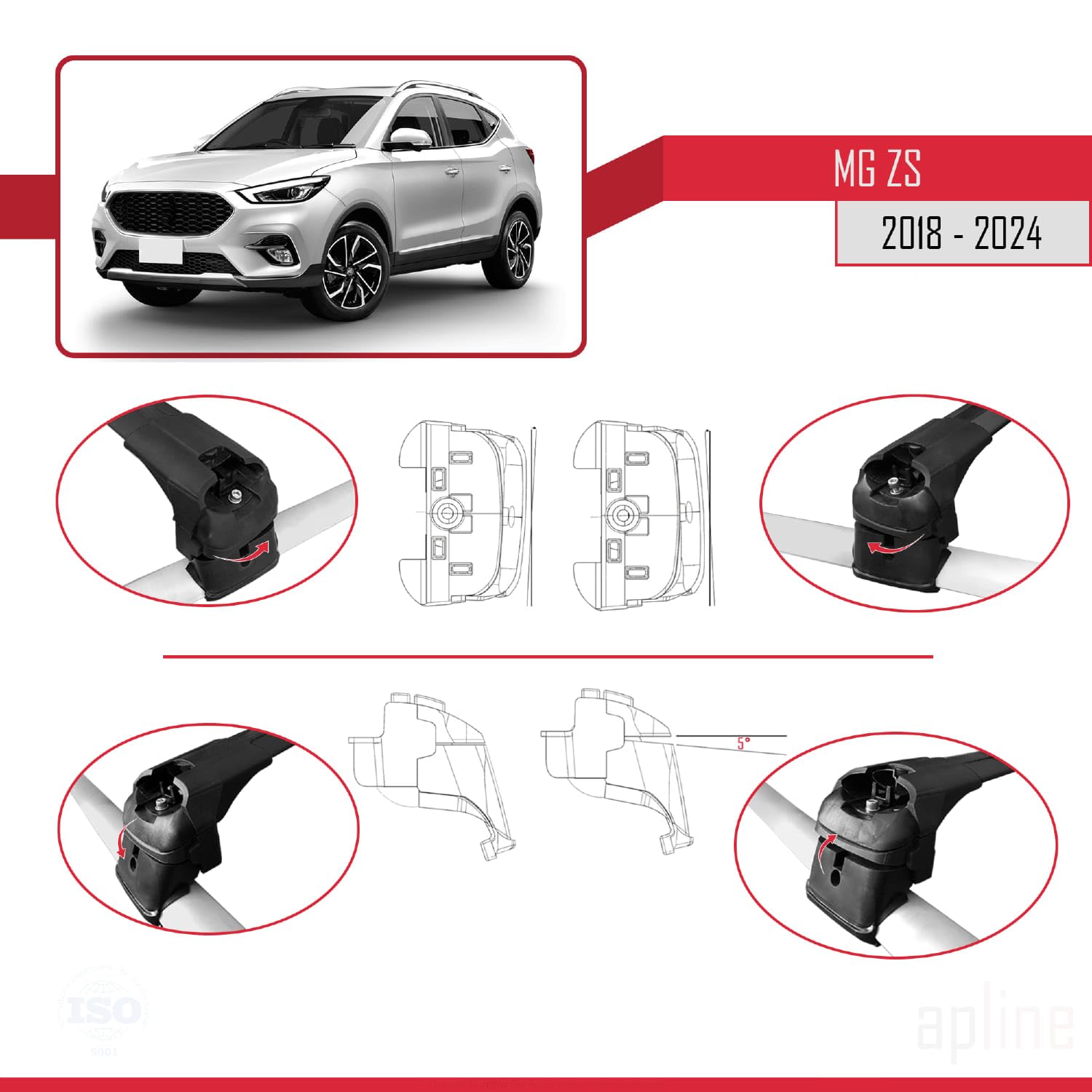 Compatible with MG ZS 2018-2024 ACE-2 Car Roof Rack Cross Bar Black Aluminium 2 Bars