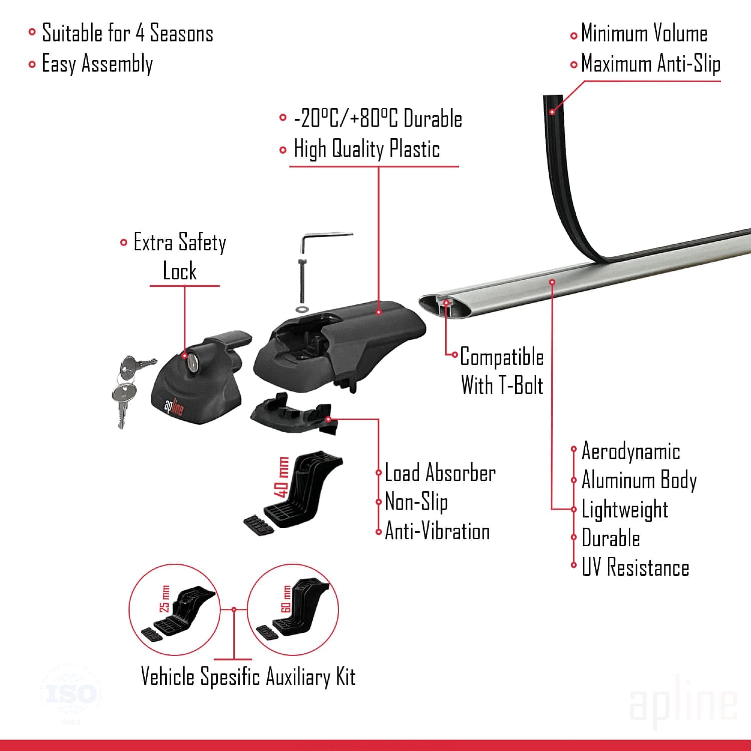 - It can carry up to 75kg in moving vehicle with aluminium bars. In the parked vehicle, 150kg maximum load is recommended for the product consisting of 2 bars and 225kg maximum load is recommended for the product consisting of 3 bars.