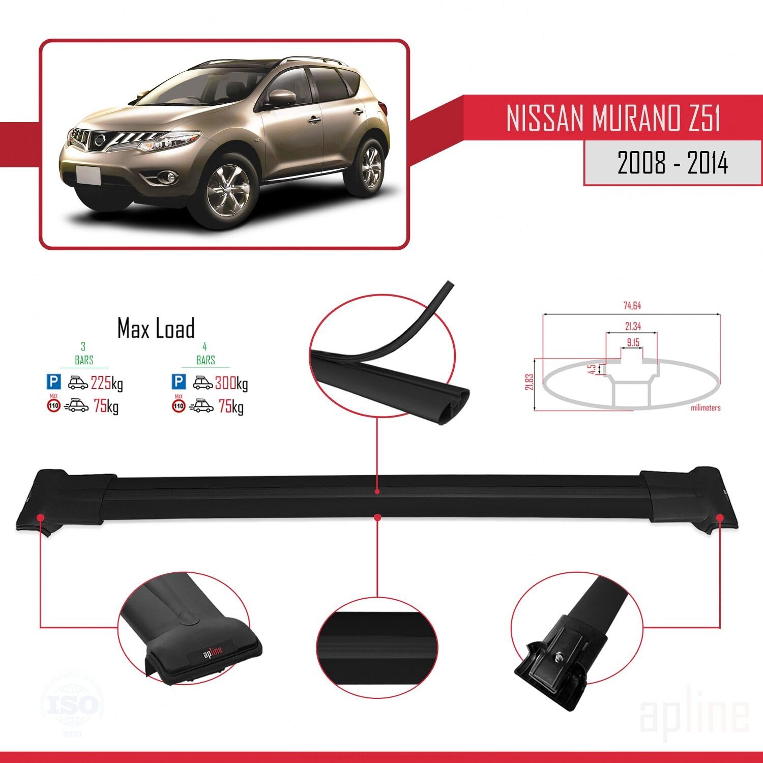 Compatible with Nissan Murano 2 (Z51) 2008-2014 Fly Model Car Roof Rack Cross Bar Black Aluminium 3 Bars