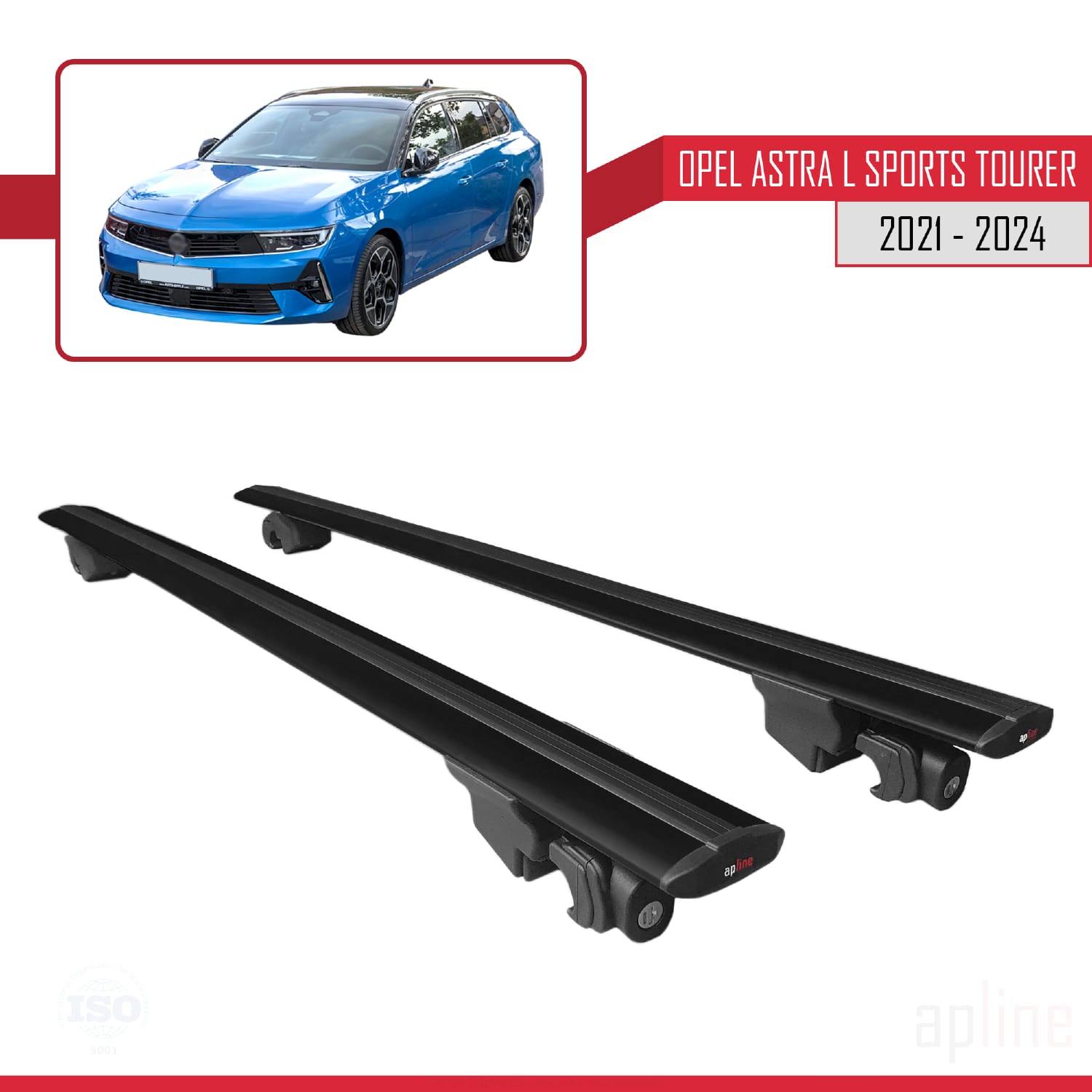 Compatible with Opel Astra L Sports Tourer 2021-2024 HOOK Model Car Roof Rack Cross Bar Black Aluminium 2 Bars