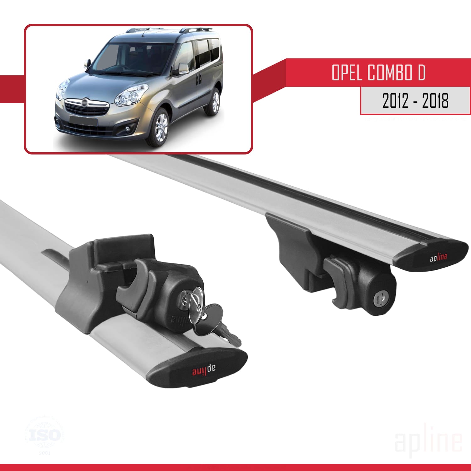 Compatible with Opel Combo D 2012-2018 HOOK Model Car Roof Rack Cross Bar Grey Aluminium 2 Bars