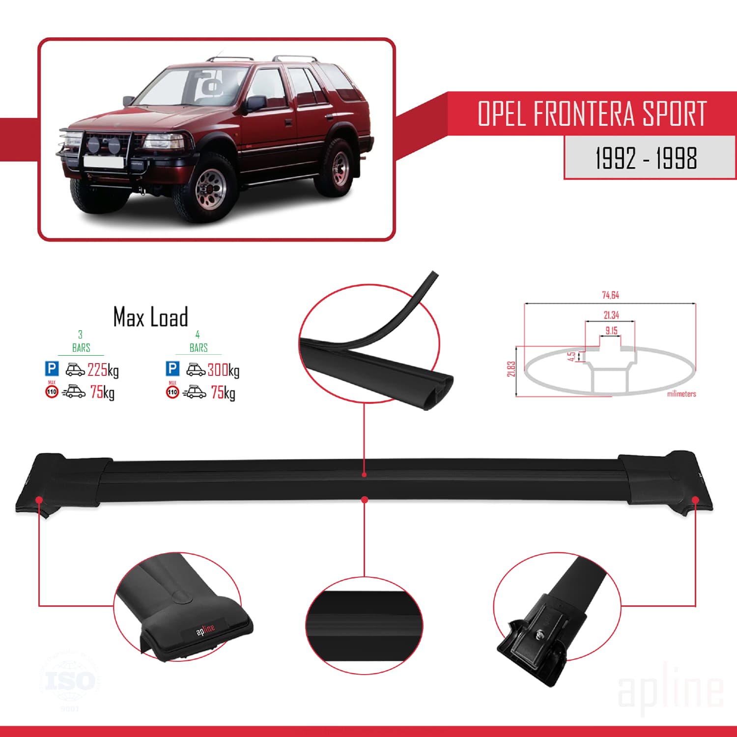 Compatible with Opel Frontera Sport 1992-1998 FLY Model Car Roof Rack Cross Bar Black Aluminium 3 Bars