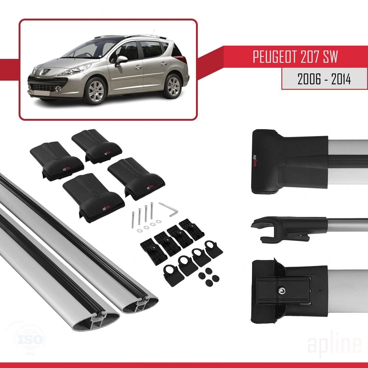 Compatible with Peugeot 207 SW 2006-2014 FLY Model Car Roof Rack Cross Bar Grey Aluminium 2 Bars