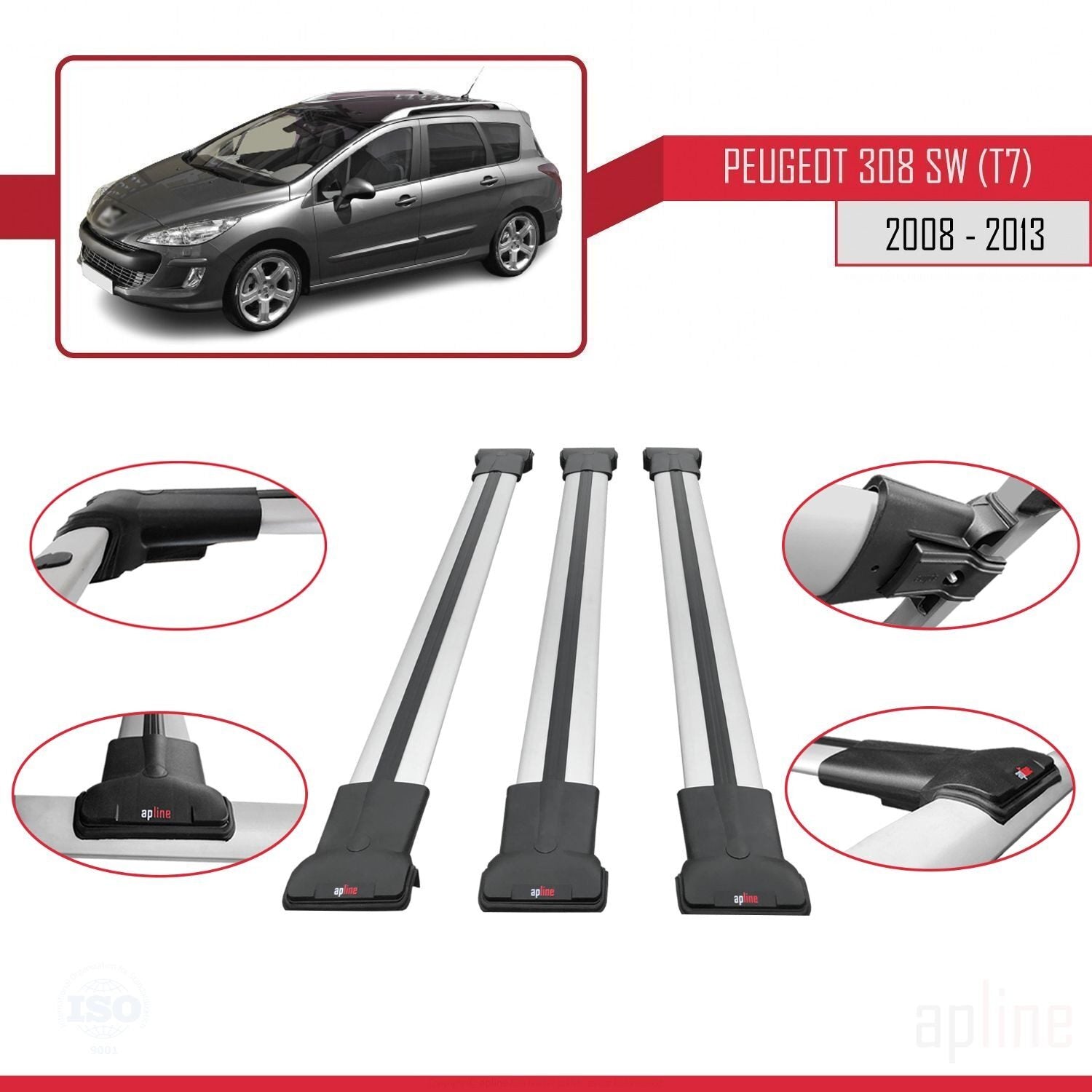 Compatible with Peugeot 308 (T7) SW 2008-2013 FLY Model Car Roof Rack Cross Bar Grey Aluminium 3 Bars