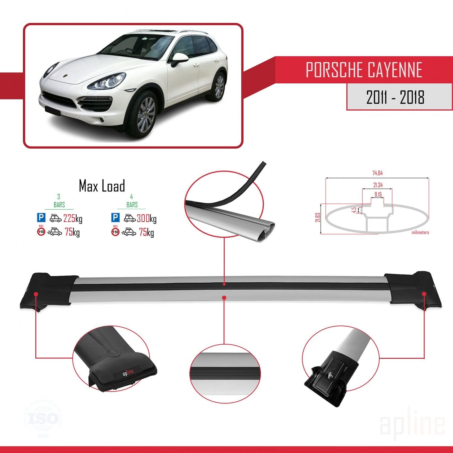 Compatible with Porsche Cayenne 2 (92A) 2011-2018 Fly Model Car Roof Rack Cross Bar Grey Aluminium 3 Bars