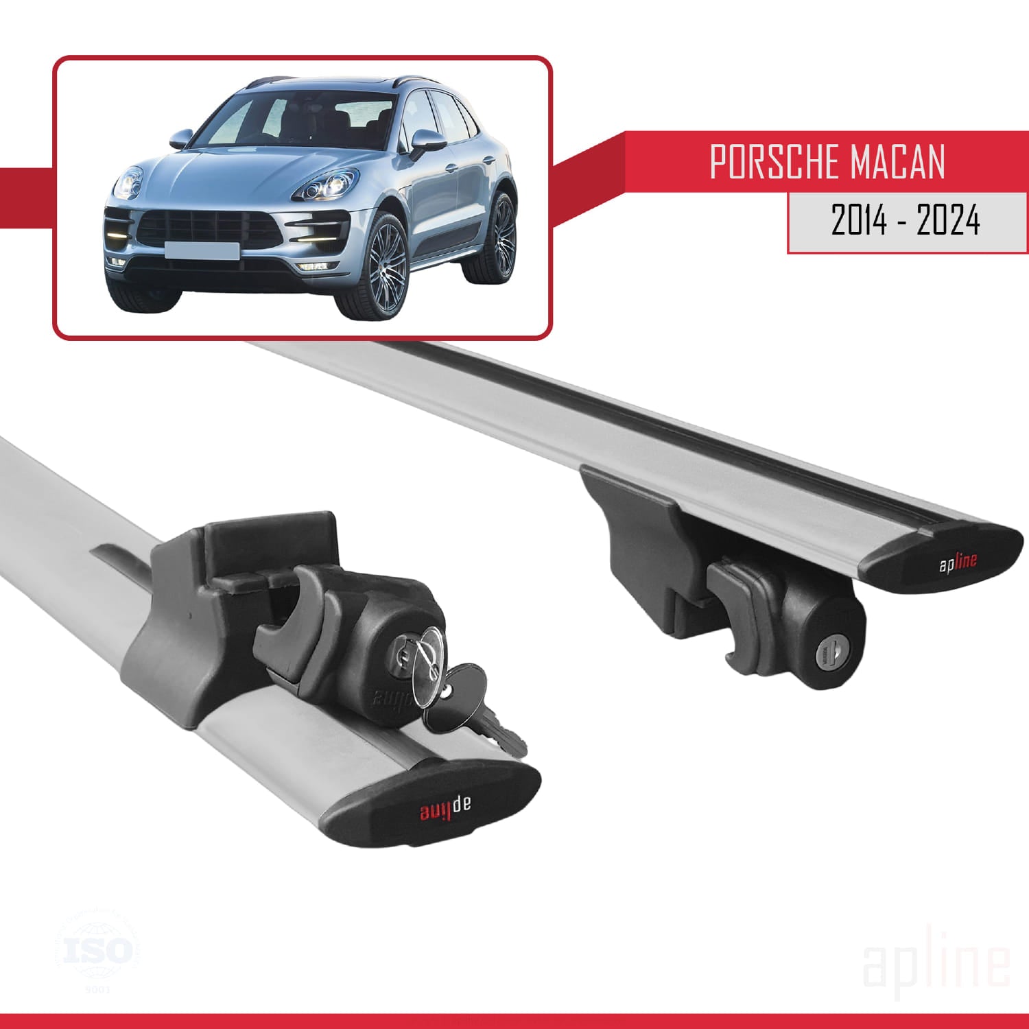 Compatible with Porsche Macan (95B) 2014-2024 HOOK Model Car Roof Rack Cross Bar Grey Aluminium 2 Bars