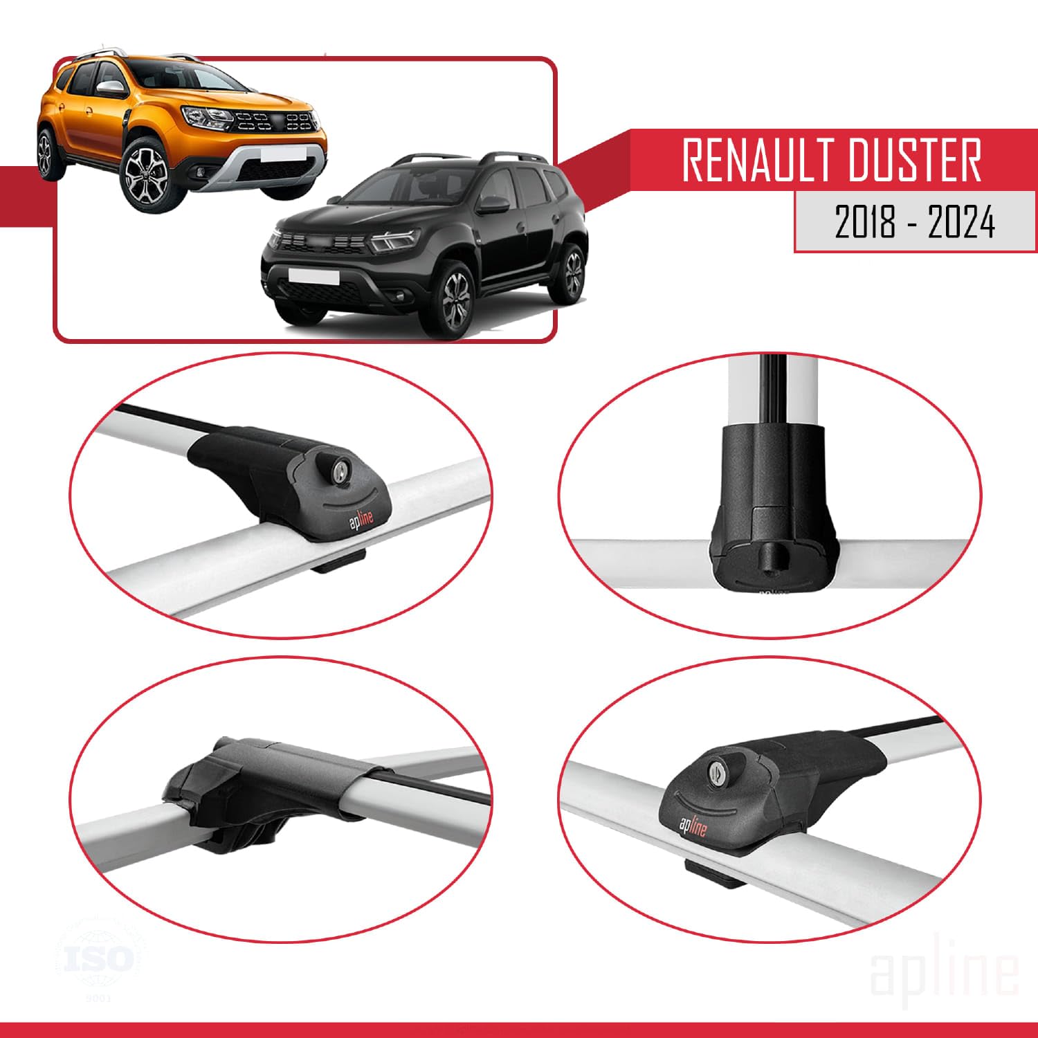 Compatible with Renault Duster 2 (HM) 2018-2024 ACE-1 Car Roof Rack Cross Bar Grey Aluminium 3 Bars