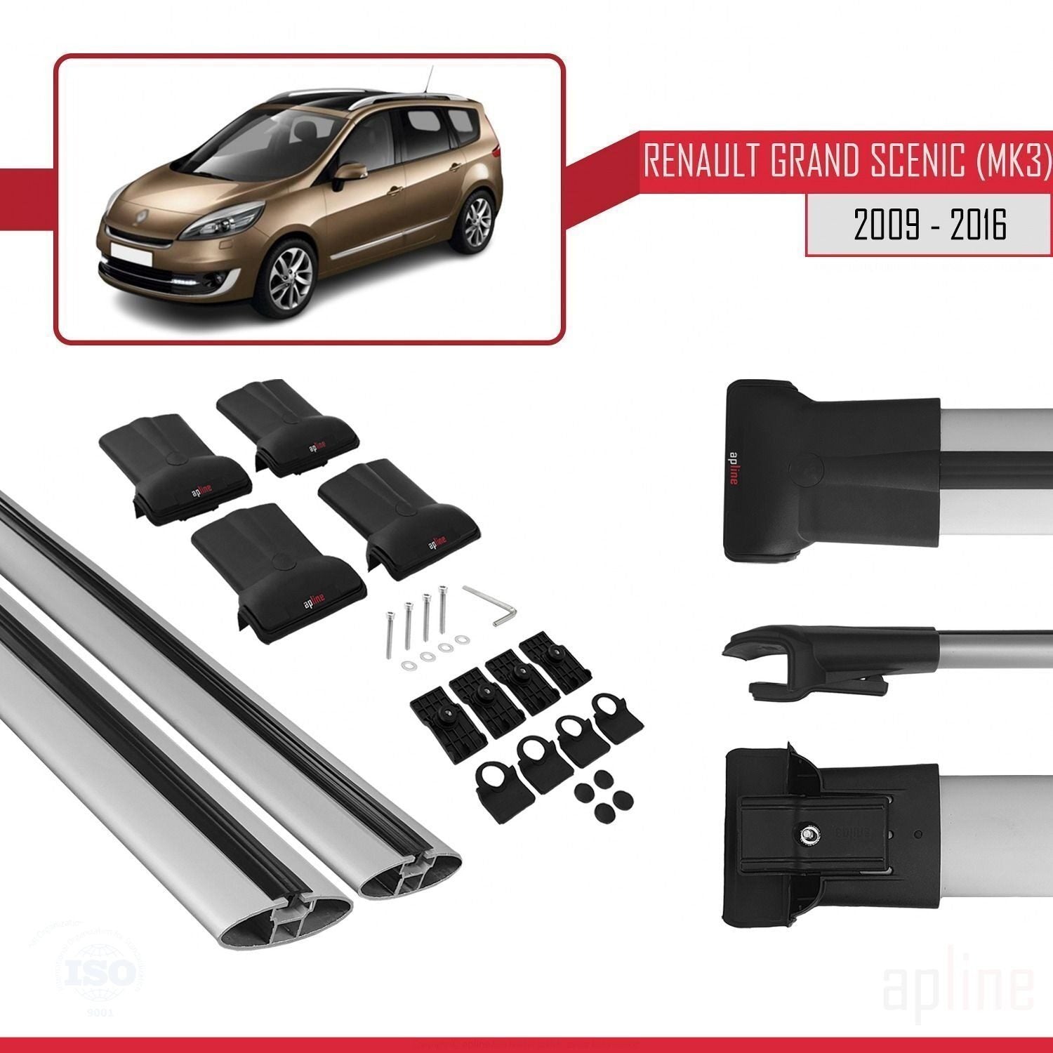 Compatible with Renault Grand Scenic 3 2009-2016 FLY Model Car Roof Rack Cross Bar Grey Aluminium 2 Bars