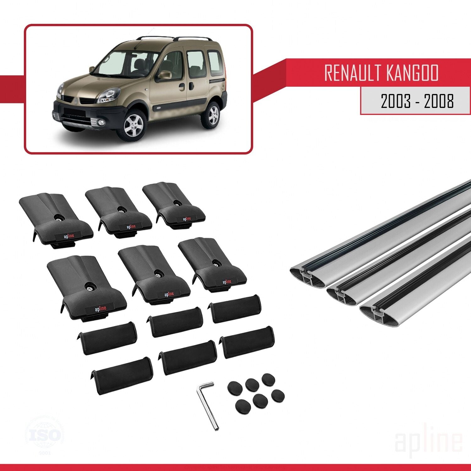 Compatible with Renault Kangoo (X76) Post-Facelift 2003-2008 FLY Model Car Roof Rack Cross Bar Grey Aluminium 3 Bars