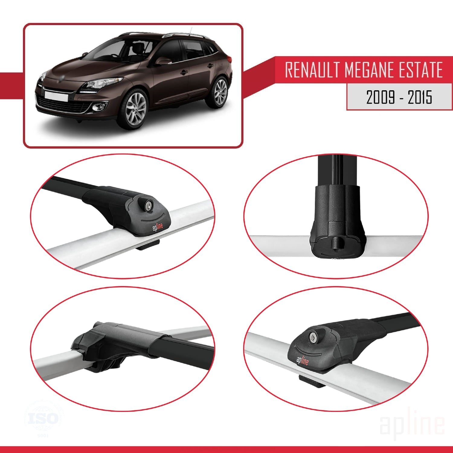 Compatible with Renault Megane 3 ST 2009-2015 ACE-1 Car Roof Rack Cross Bar Black Aluminium 3 Bars