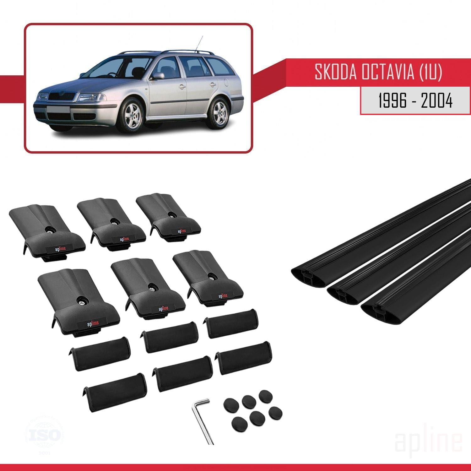 Compatible with Skoda Octavia (1U) 1996-2004 Fly Model Car Roof Rack Cross Bar Black Aluminium 3 Bars
