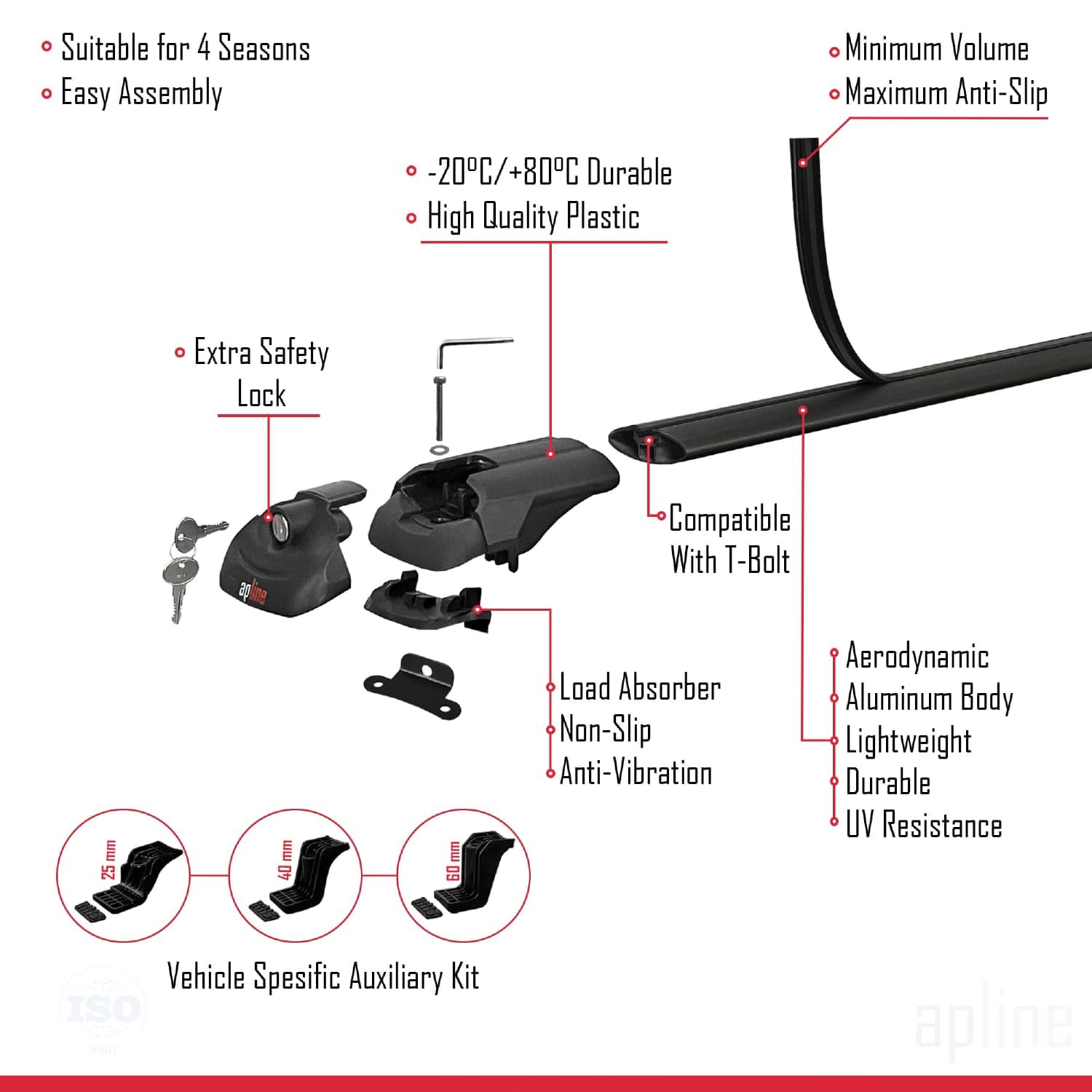 - It can carry up to 75kg in moving vehicle with aluminium bars. In the parked vehicle, 150kg maximum load is recommended for the product consisting of 2 bars and 225kg maximum load is recommended for the product consisting of 3 bars.