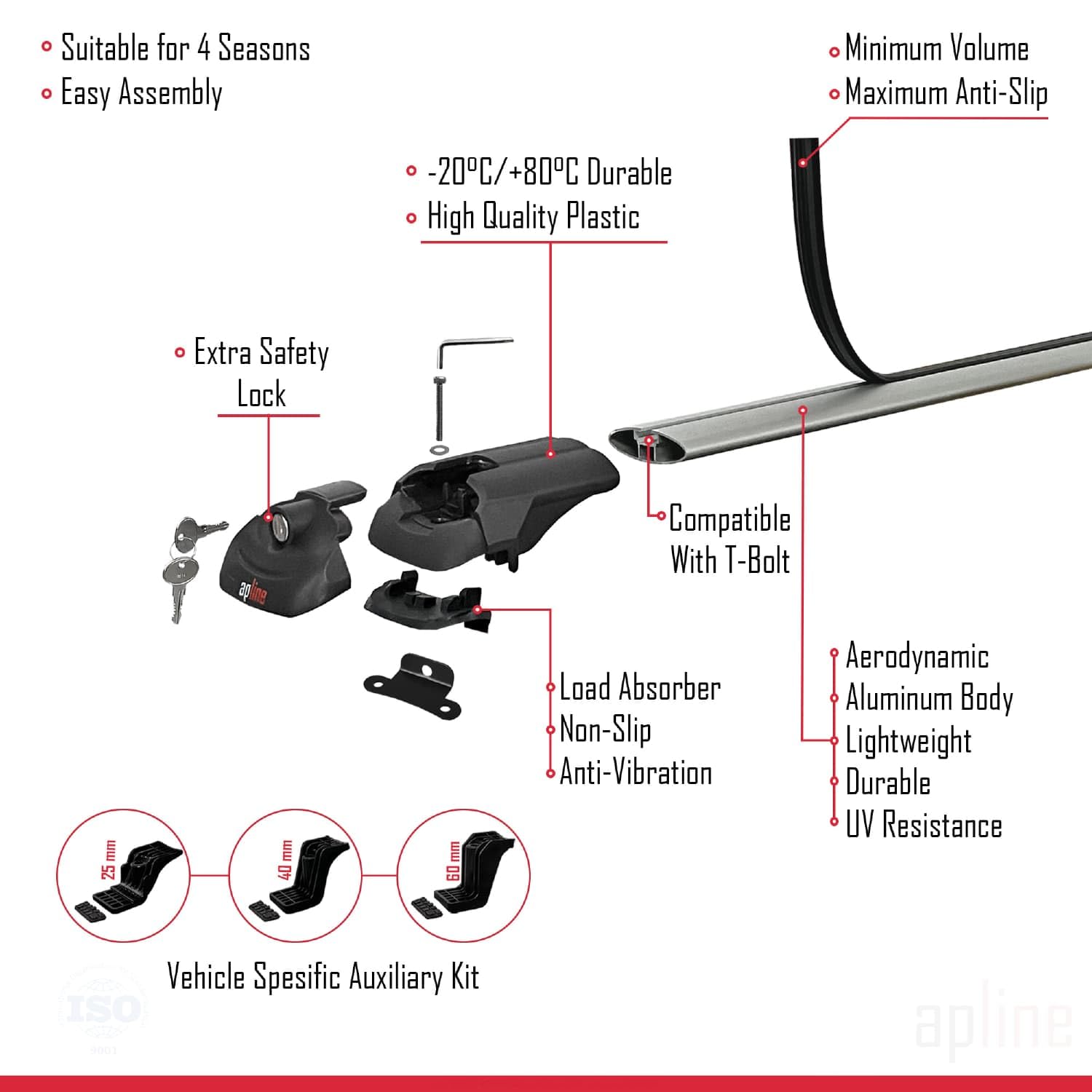 - It can carry up to 75kg in moving vehicle with aluminium bars. In the parked vehicle, 150kg maximum load is recommended for the product consisting of 2 bars and 225kg maximum load is recommended for the product consisting of 3 bars.