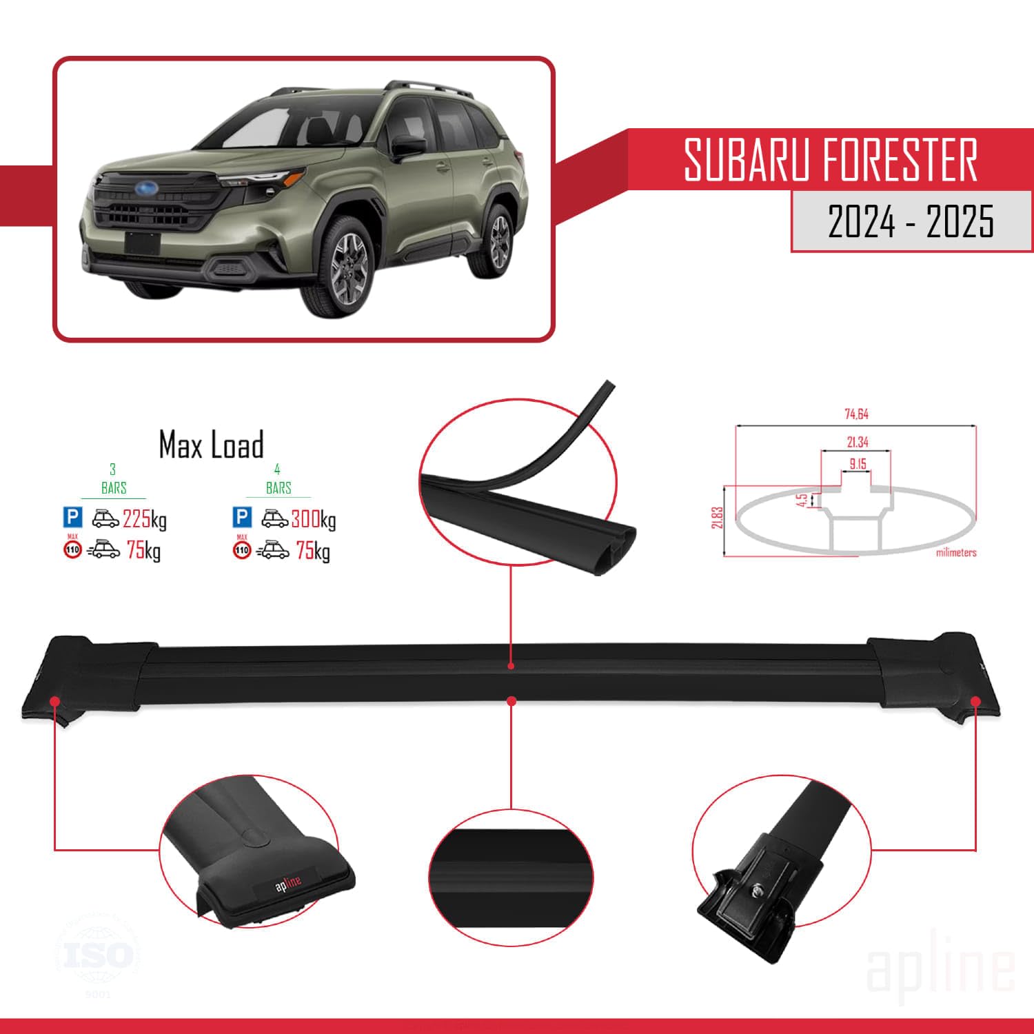 Compatible with Subaru Forester (Raised Roof) 2024-2025 Fly Model Car Roof Rack Cross Bar Black Aluminium 3 Bars