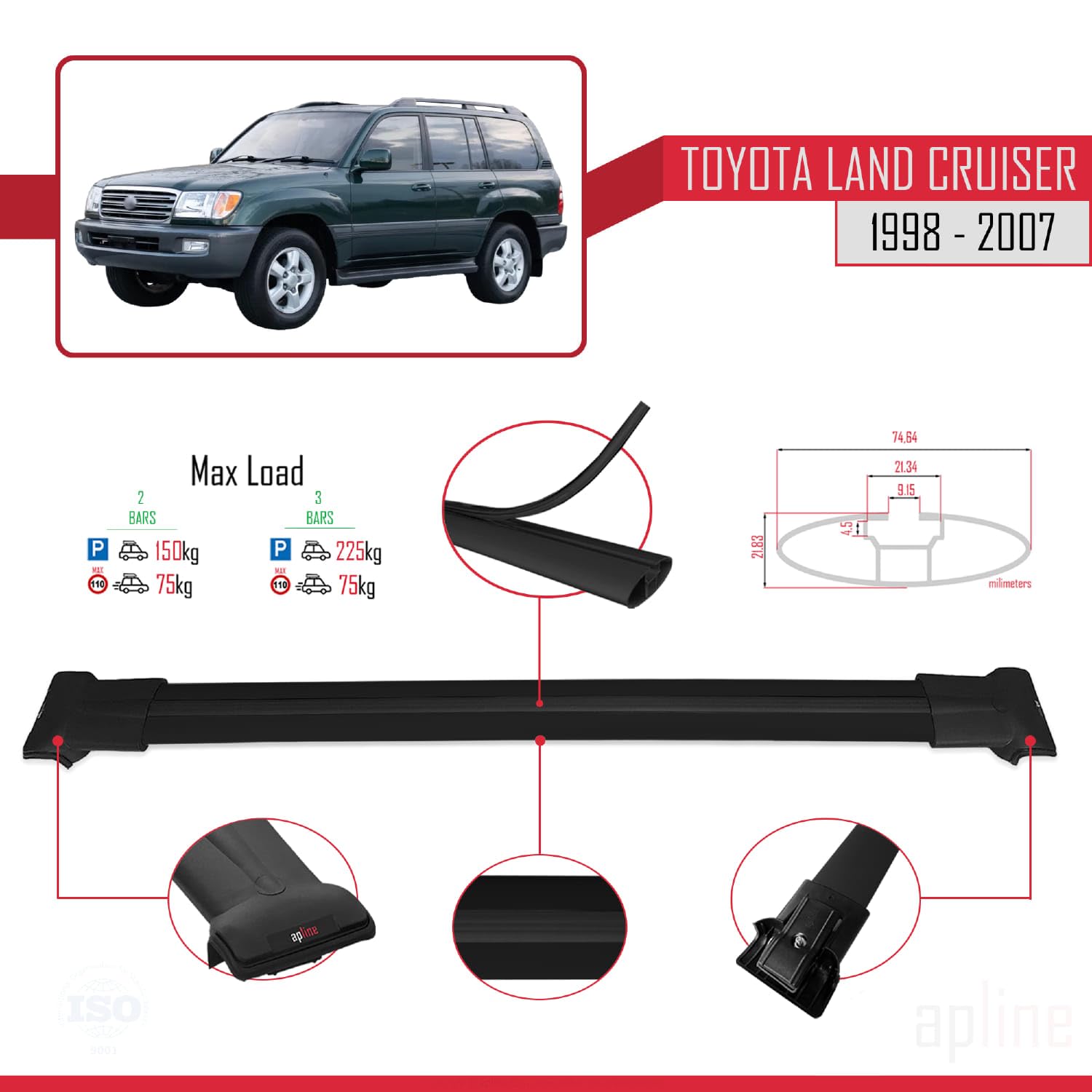 Compatible with Toyota Land Cruiser 1998-2007 Fly Model Car Roof Rack Cross Bar Black Aluminium 2 Bars