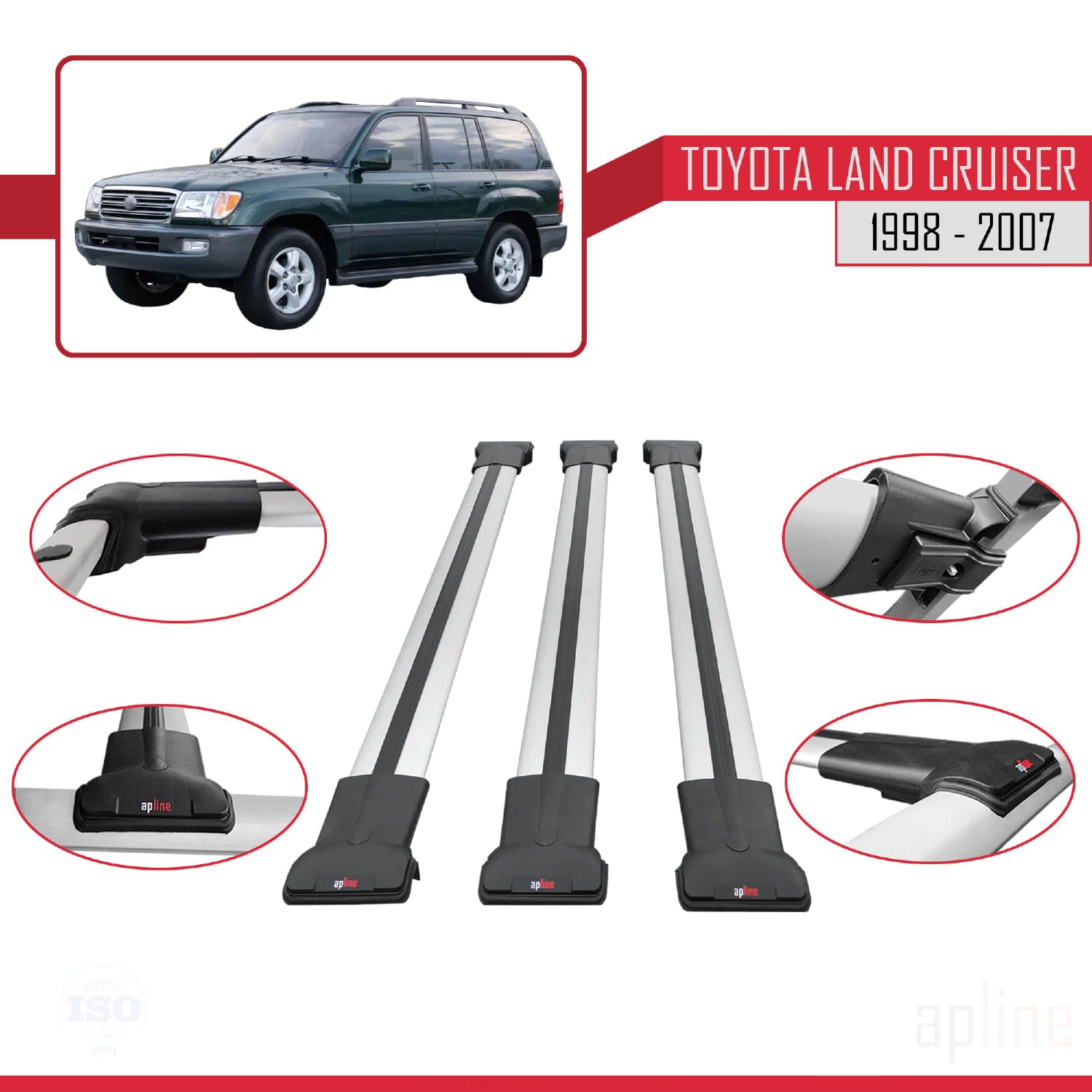 Compatible with Toyota Land Cruiser 1998-2007 Fly Model Car Roof Rack Cross Bar Grey Aluminium 3 Bars