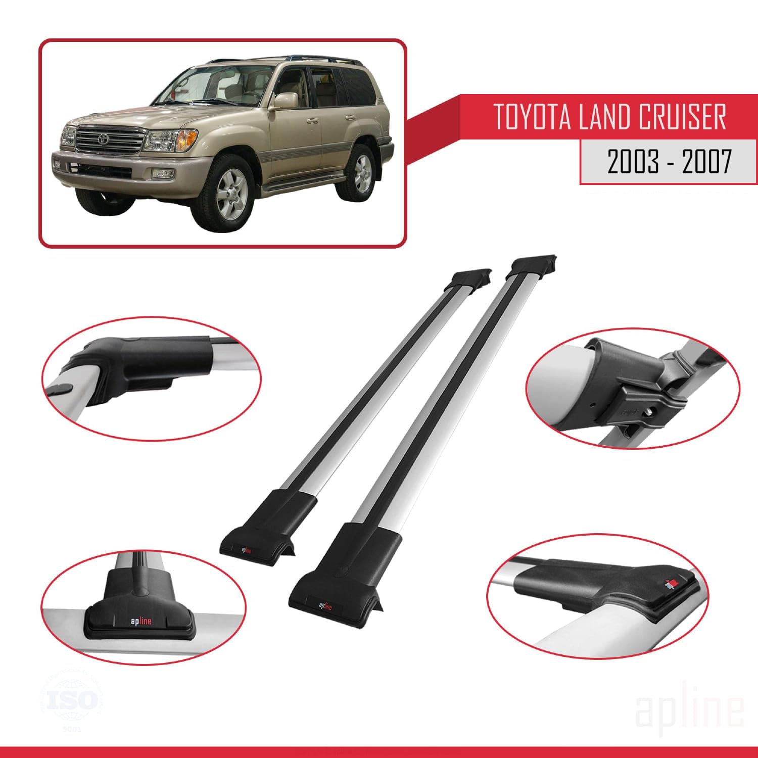 Compatible with Toyota Land Cruiser (J100) 2003-2007 Fly Model Car Roof Rack Cross Bar Grey Aluminium 2 Bars