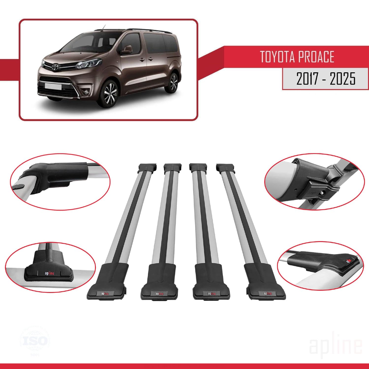 Compatible with Toyota Proace 2017-2025 Fly Model Car Roof Rack Cross Bar Grey Aluminium 4 Bars