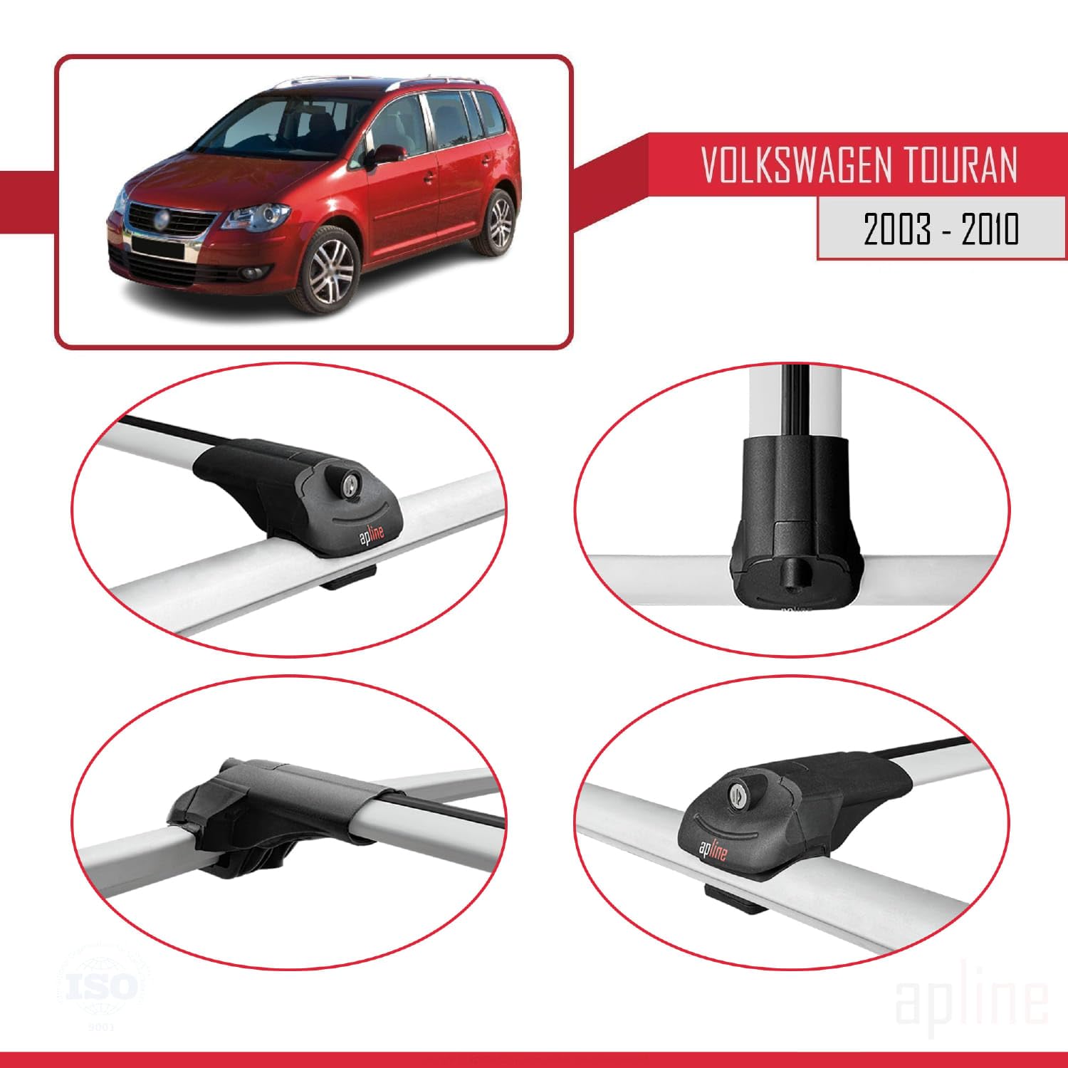 Compatible with Volkswagen Touran (1T) Pre-Facelift 2003-2010 ACE-1 Car Roof Rack Cross Bar Grey Aluminium 2 Bars