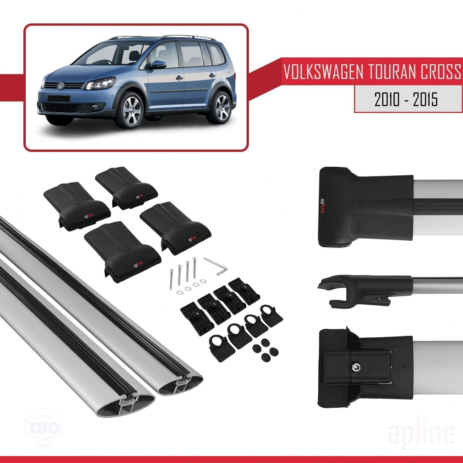 Compatible with Volkswagen Touran Cross Post-Facelift 2010-2015 FLY Model Car Roof Rack Cross Bar Grey Aluminium 2 Bars